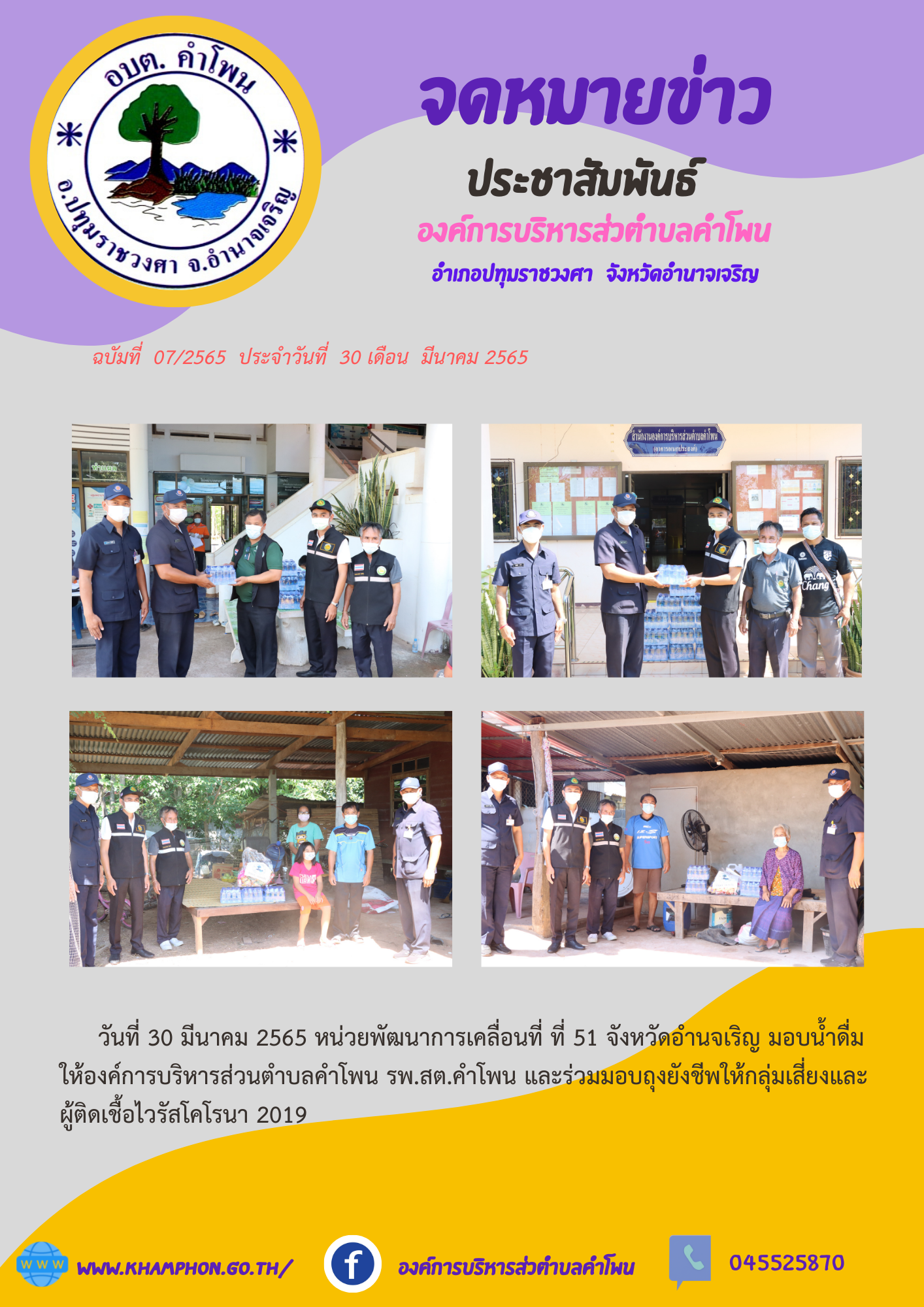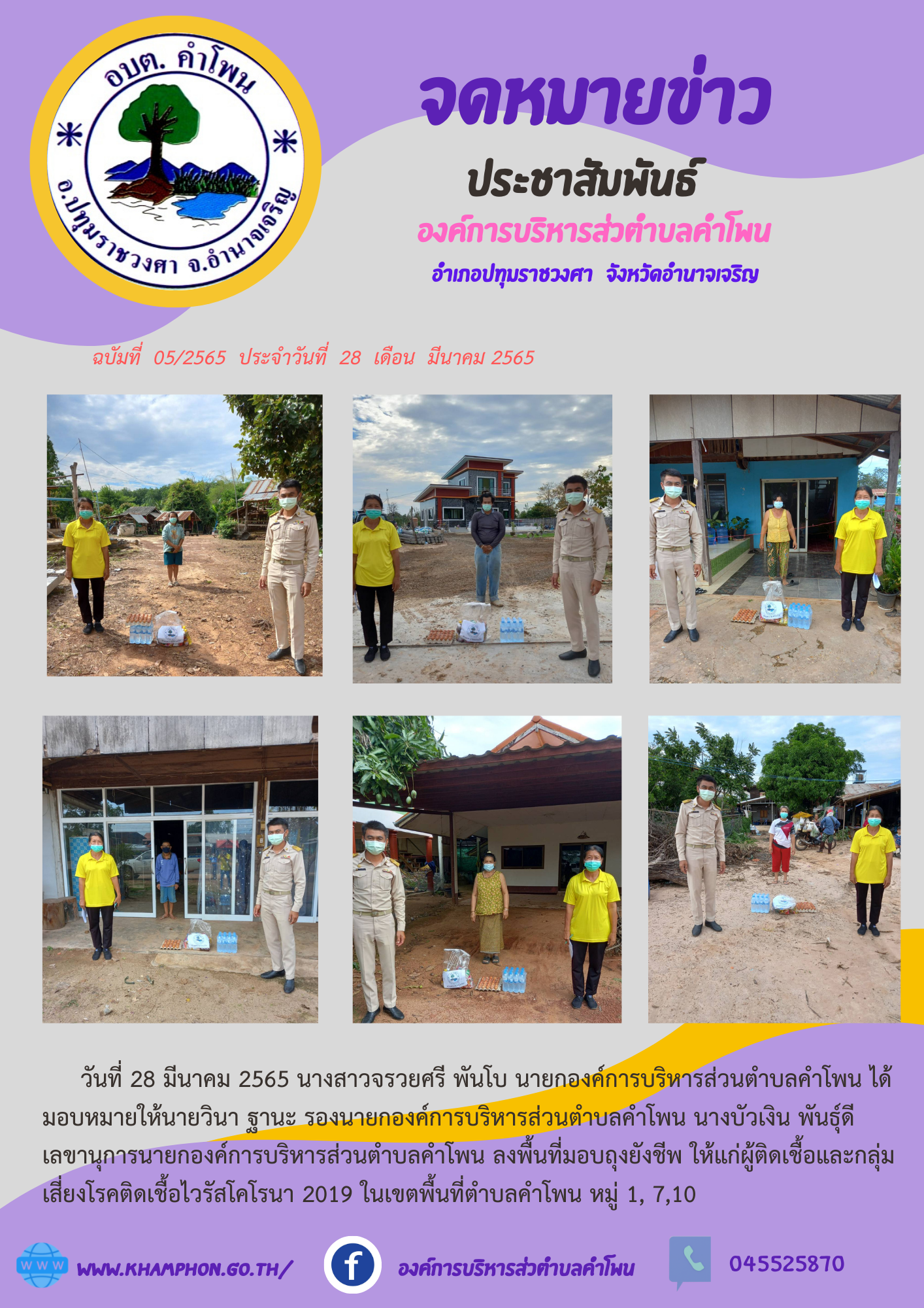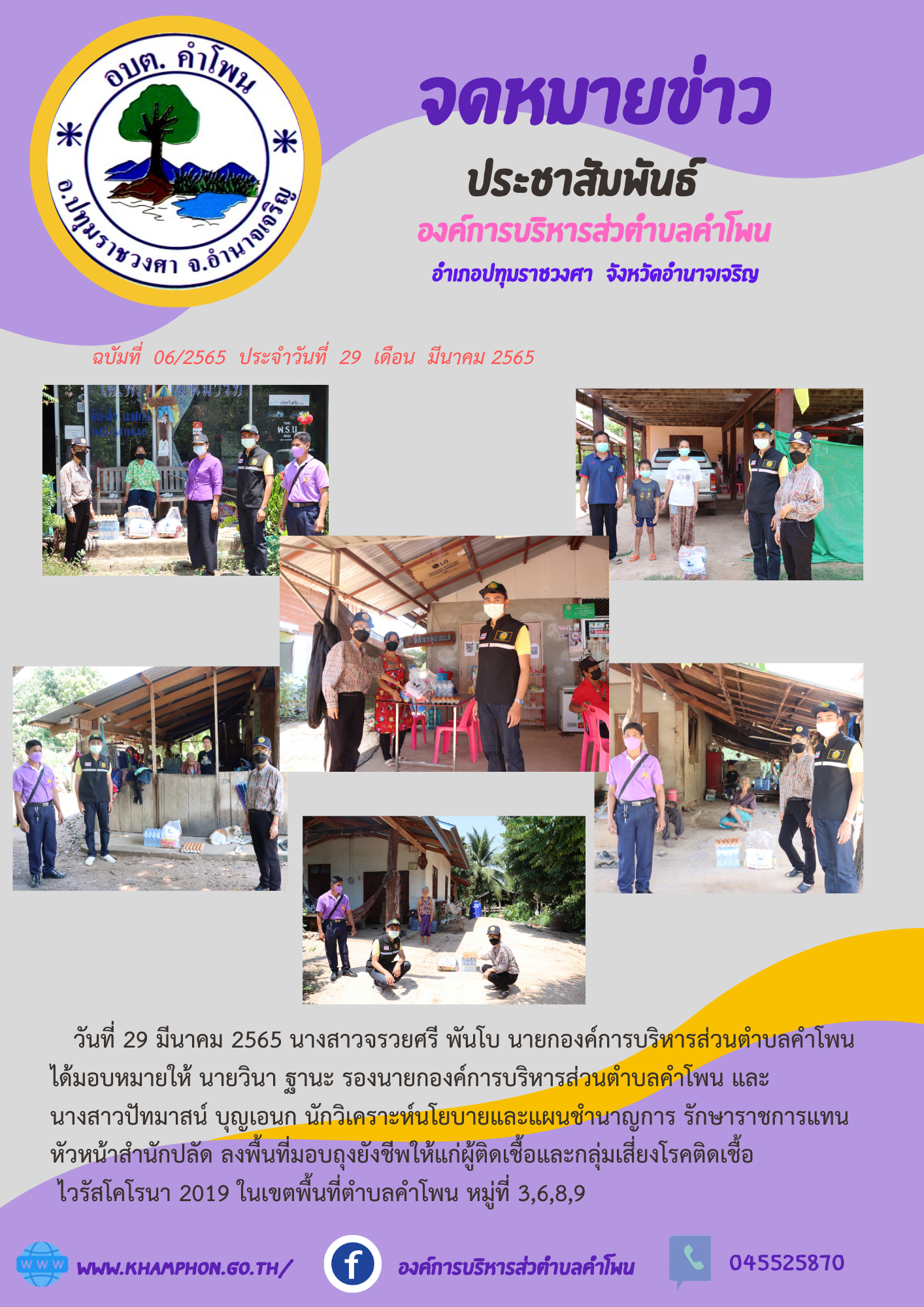 ลงพื้นที่มอบถุงยังชีพ ให้แก่ผู้ติดเชื้อและกลุ่มเสี่ยงโรคติดเชื้อไวรัสโคโรนา 2019 [29 มีนาคม 2565]