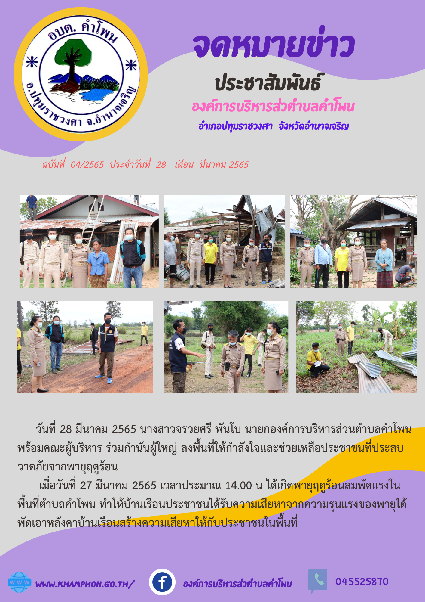 ลงพื้นที่ให้กำลังใจและช่วยเหลือประชาชนที่ประสบวาตภัยจากพายุฤดูร้อน [28 มีนาคม 2565]