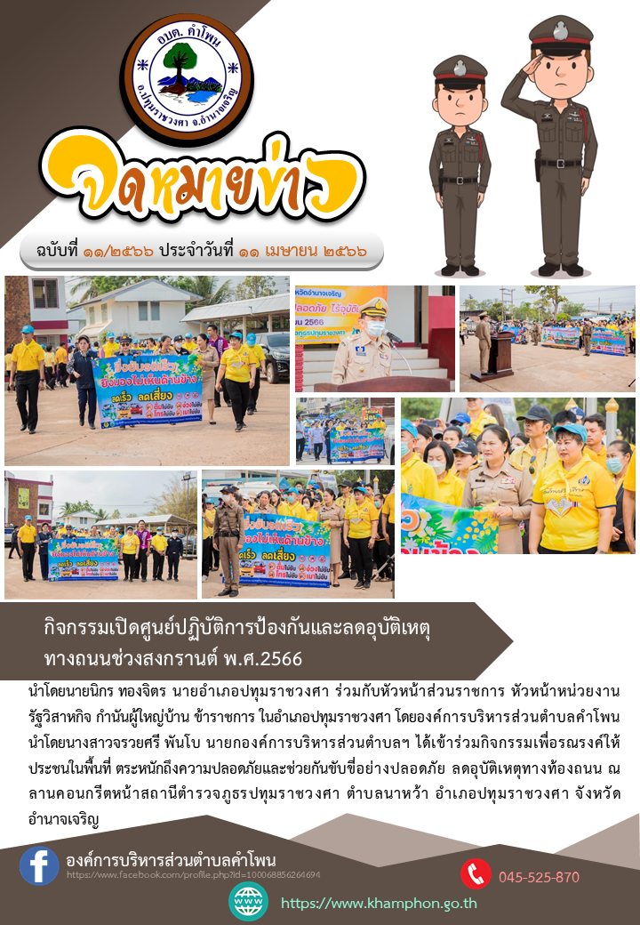 กิจกรรมเปิดศูนย์ปฏิบัติการป้องกันและลดอุบัติเหตุทางถนนช่วงสงกรานต์ พ.ศ.2566 [11 เมษายน 2566]