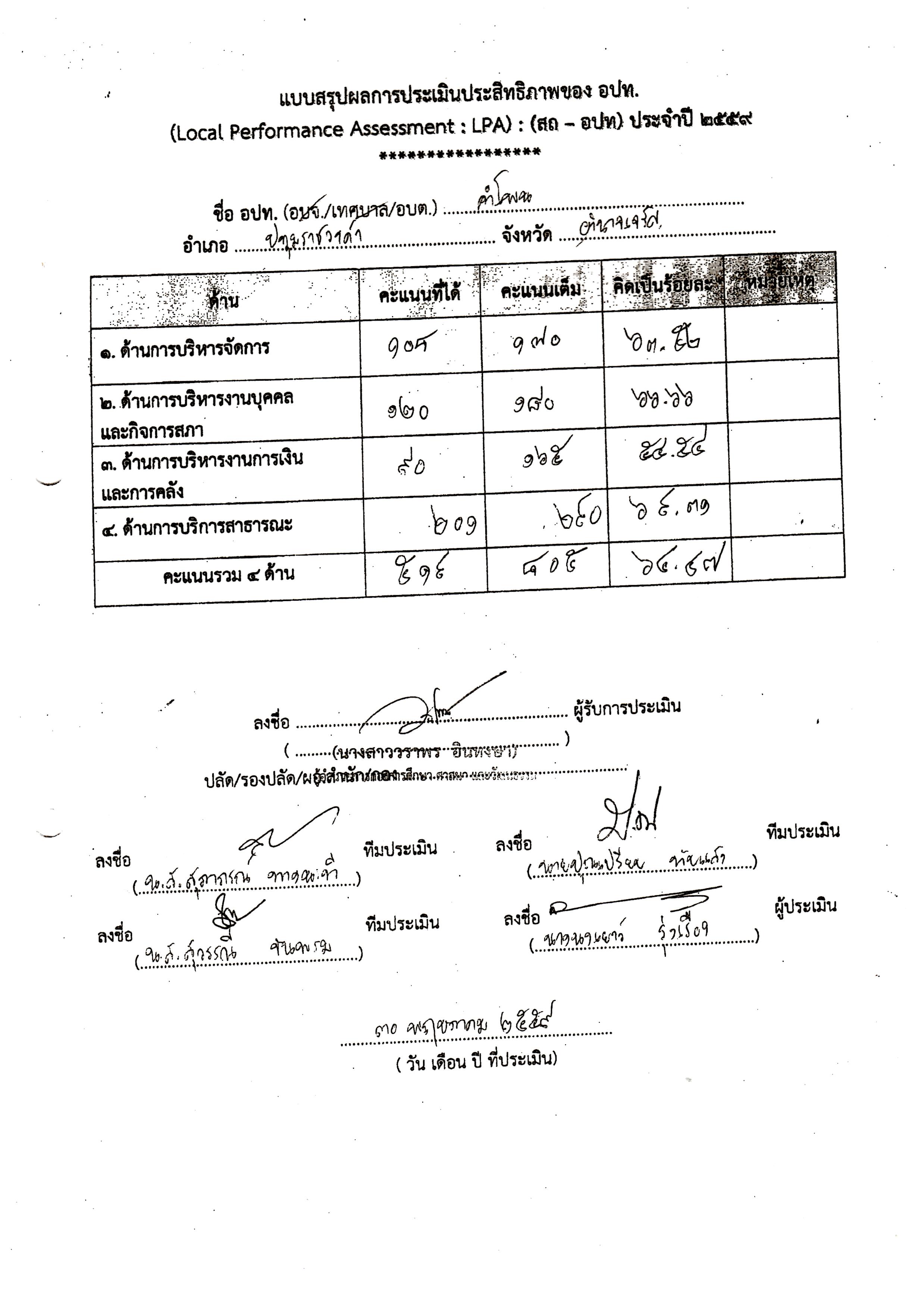 รายงานผลการตรวจประเมินประสิทธิภาพองค์กรปกครองส่วนท้องถิ่น(LPA) ปี พ.ศ.2559